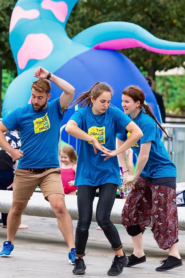 El proyecto The Dance WE Made es la original performance de danza interactiva que te invita a ser el coreógrafo – ¡no se requiere experiencia! Nuestro equipo de talentosos bailarines profesionales necesita tu ayuda: ayúdalos a crear nuevos movimientos y observa cómo la coreografía se construye ante tus ojos. Los nuevos bailes son interpretados por el equipo, grabados y subidos a YouTube.